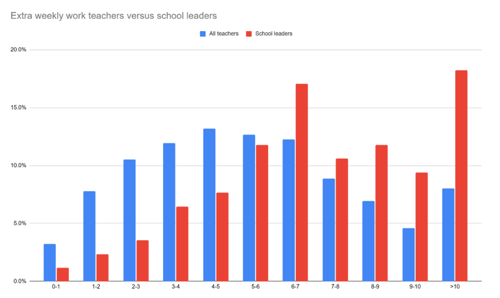 The data shows that school leaders, who have no limitation to their hours in their contracts, are working many hours at home too.